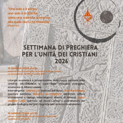 13/01/2026 – Dal 18 al 25 gennaio, la Chiesa celebra la Settimana di preghiera per l’unità dei Cristiani, quest’anno sul tema tratto dalla lettera di San Paolo agli Efesini “Uno… Read More