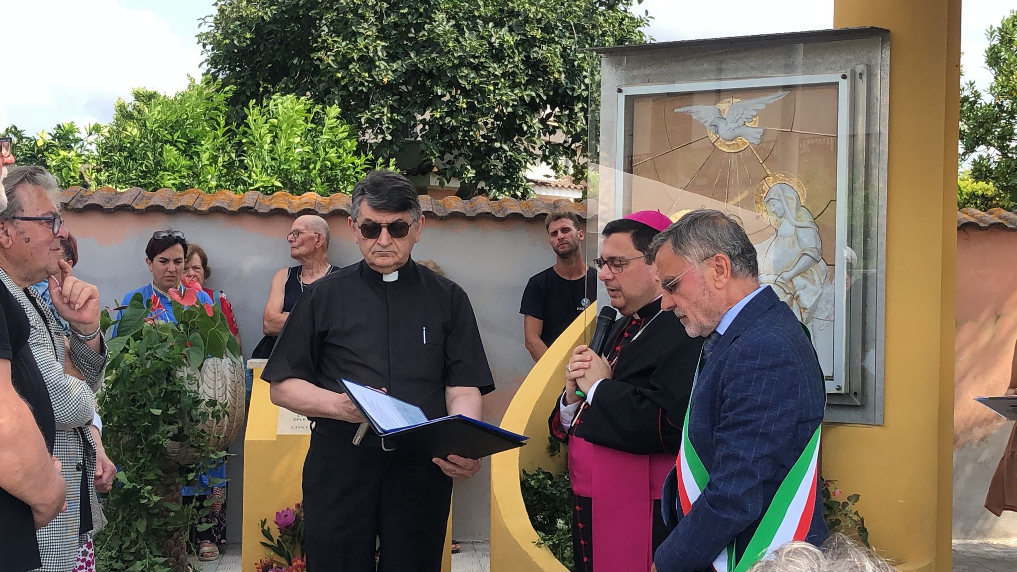 30/06/2023 – Venerdì 30 giugno, a Nettuno, il vescovo Vincenzo Viva ha benedetto la targa apposta all’angolo tra via Pietro Nenni e via dei Marmi, nel quartiere San Giacomo, in memoria di don Luigi Fossati che lì è stato parroco dal 1996 al 2012. La targa è stata scoperta nel corso di una cerimonia alla quale hanno partecipato, oltre al vescovo di Albano, anche il Commissario straordinario del Comune di Nettuno, Antonio Reppucci, il parroco di San Giacomo apostolo e vicario territoriale di Nettuno, don Carlo Rota, e i rappresentanti della Confraternita San Giacomo, che lo stesso don Luigi Fossati ha contribuito a far nascere. «Don Luigi Fossati – ha detto il vescovo Vincenzo Viva – è appartenuto a un gruppo di sacerdoti che dal Veneto è giunto sul nostro territorio diocesano in seguito all’espansione urbanistica e sociale: sacerdoti che hanno dato nella nostra diocesi una forte testimonianza, sia fondando opere pastorali, ma soprattutto testimoniando un modo molto bello di essere preti. Erano missionari e pastori».