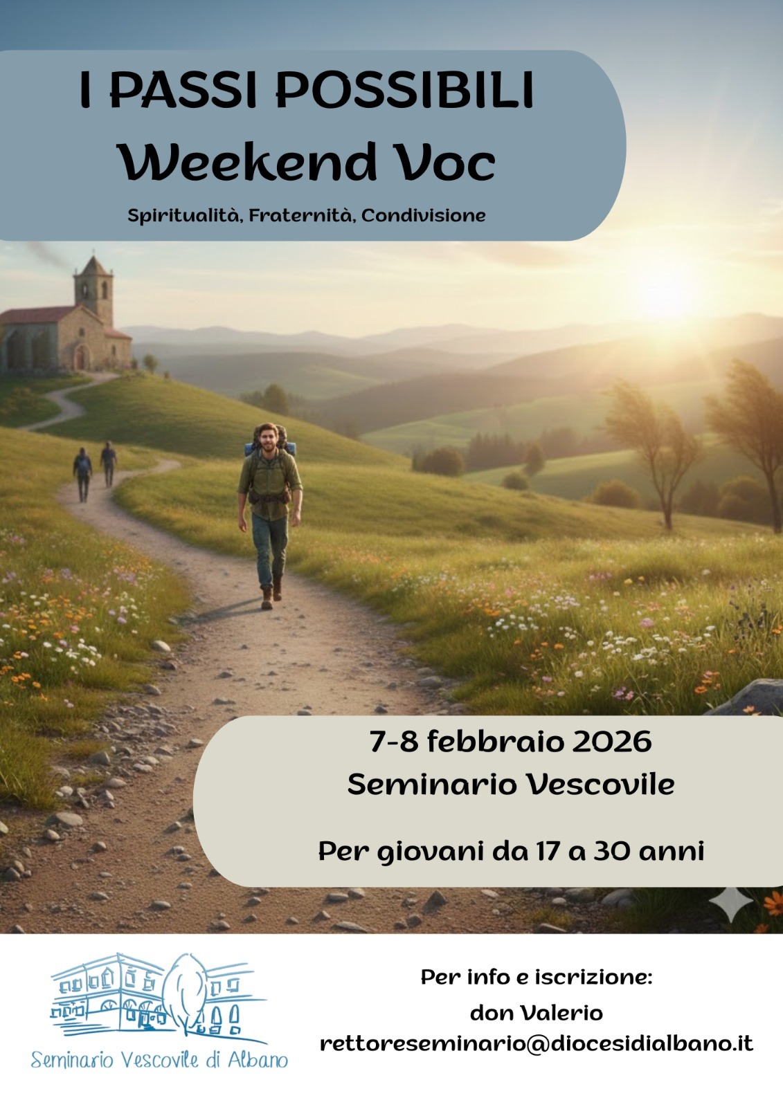 23/01/2026 – È in calendario il 7 e l’8 febbraio, presso il Seminario vescovile di Albano, “I passi possibili”, un weekend vocazionale, occasione di spiritualità, fraternità e condivisione, a cura della comunità del Seminario e dedicato a ragazzi dai 17 ai 30 anni.