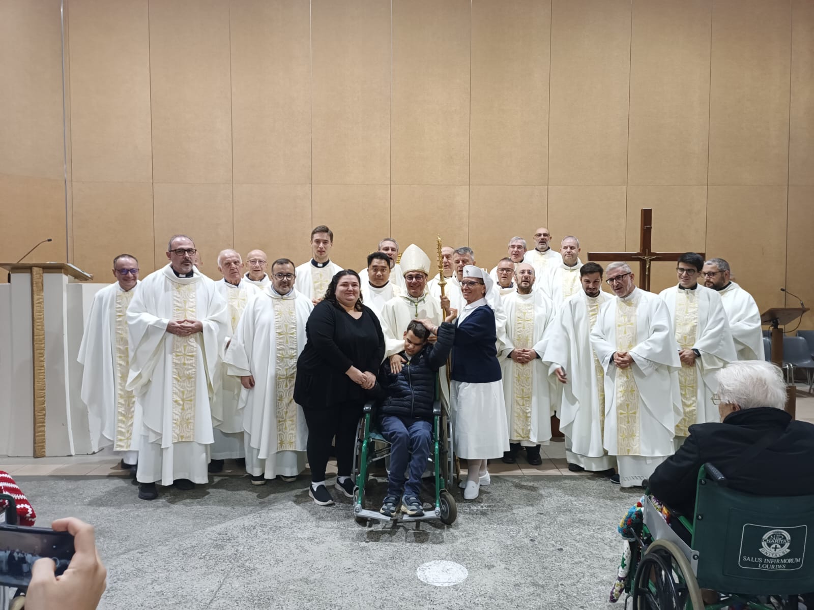 15/10/2025 – Da domenica 12 a mercoledì 15 ottobre, il vescovo di Albano, Vincenzo Viva ha partecipato, insieme al Cancelliere vescovile don Donato Pio Dota, al diacono don Paolo Larin, ai seminaristi Simone Gasbarri e Leonardo Leonett Rondon e alcuni sacerdoti, al pellegrinaggio a Lourdes a cura dell’Unitalsi. L’iniziativa ha visto la presenza di circa mille partecipanti da tutto il Lazio, accompagnati dall’assistente regionale, don Pietro Rongoni: tra questi, anche 125 persone della diocesi di Albano, accompagnate dall’assistente diocesano don Carlos Tomé e dal presidente della sottosezione di Albano dell’Unitalsi, Piero Corti. Insieme, hanno condiviso un’esperienza di prossimità, preghiera e attenzione, accanto alle persone ammalate, ai loro familiari e a quanti se ne prendono cura. Nel corso del pellegrinaggio, è stata anche celebrata una Messa per conferire il Sacramento della Confermazione.