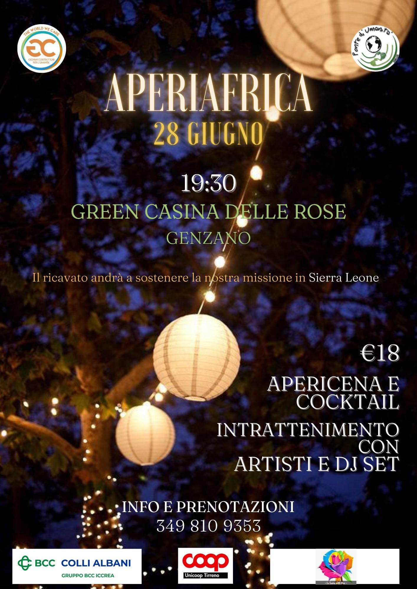 11/06/2025 – È in programma sabato 28 giugno, dalle 19,30 presso “Green, Casina delle Rose”, a Genzano di Roma, l’ottava edizione di “AperiAfrica”, l’iniziativa di sostegno ai progetti nella missione diocesana di Makeni, in Sierra Leone, a cura delle associazioni “Ponte di Umanità” e “Giovani costruttori per l’umanità”.