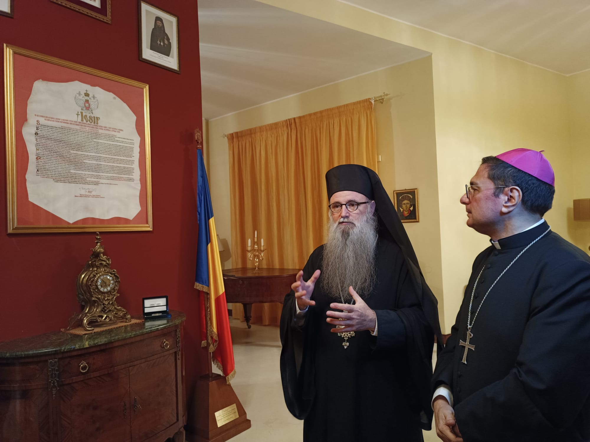 20/01/2026 – Lunedì 19 gennaio il vescovo di Albano, Vincenzo Viva – primo vescovo cattolico a prendere la parola nella Chiesa vescovile della Diocesi ortodossa romena d’Italia – ha partecipato all’“Ufficio della Piccola Compieta”, nell’ambito delle celebrazioni per la Settimana di preghiera per l’unità dei cristiani, proprio nella chiesa ortodossa di via Ardeatina, a Roma. Insieme al vescovo Viva, hanno partecipato il vescovo Siluan, della Diocesi ortodossa romena d’Italia e la pastora battista della Comunità evangelica ecumenica di Albano, Gabriela Lio.